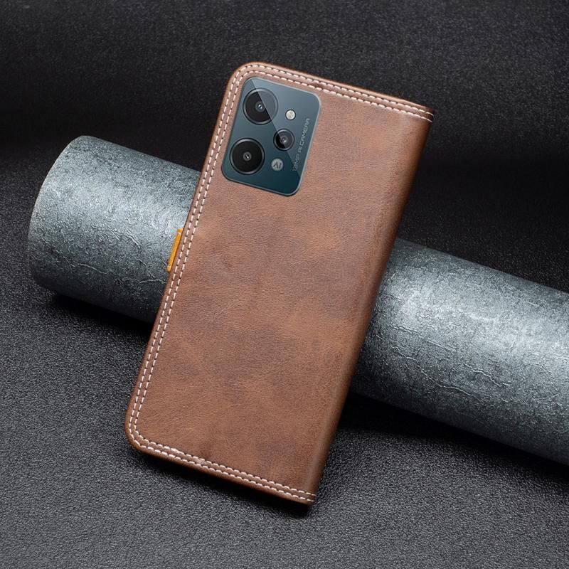 Θήκη τηλεφώνου δερμάτινη για OPPO Realme C31, διπλής ραφής, σε μαύρο χρώμα.