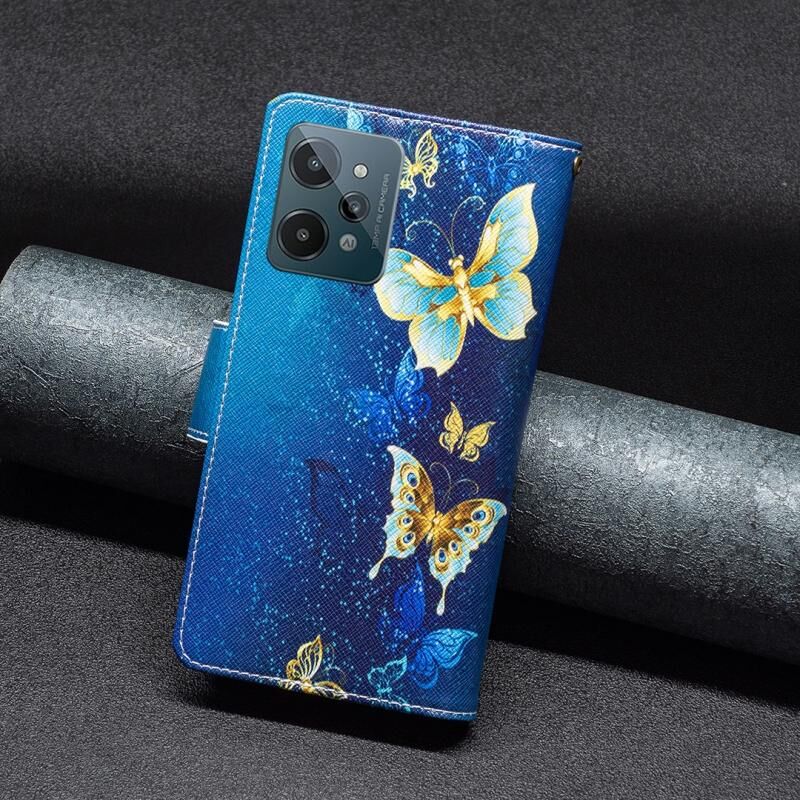 Θήκη τηλεφώνου δερμάτινη οριζόντια με φερμουάρ και σχέδιο πολύχρωμης ζωγραφικής για OPPO Realme C31 (Μωβ Πεταλούδα)