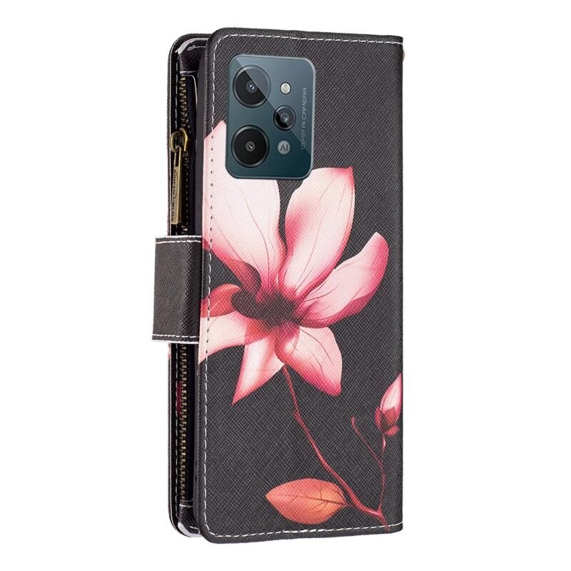 Θήκη τηλεφώνου δερμάτινη οριζόντια με φερμουάρ και σχέδιο ζωγραφικής για OPPO Realme C31 (Λωτός)