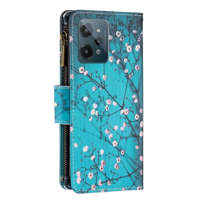 Για OPPO Realme C31 Θήκη Δερμάτινη Οριζόντια με Φερμουάρ και Πολύχρωμο Σχέδιο (Λουλούδι Δαμασκηνιάς)