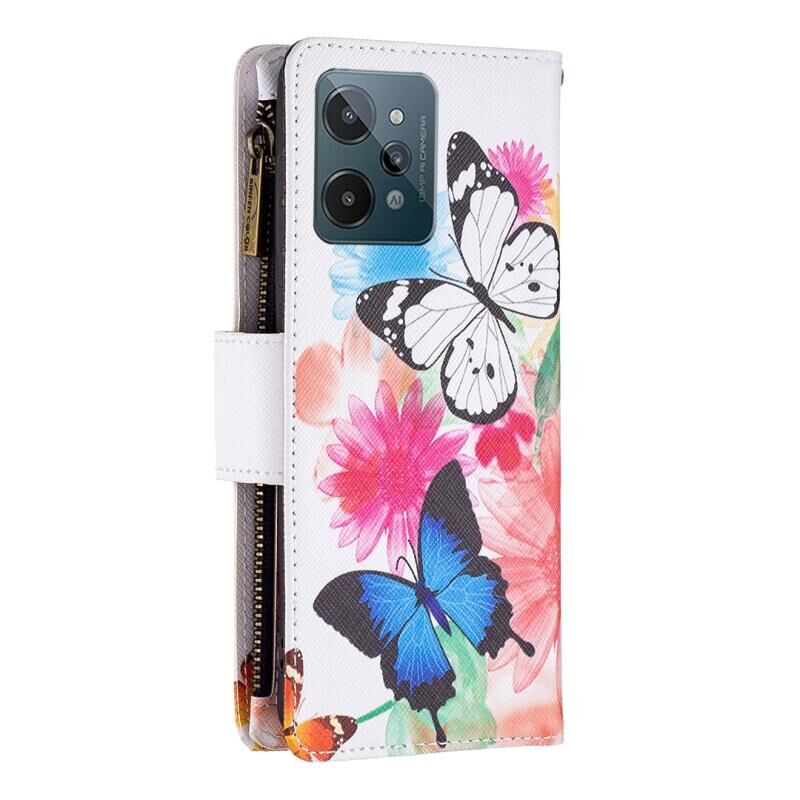 Θήκη τηλεφώνου δερμάτινη οριζόντια με φερμουάρ και σχέδιο πολύχρωμης ζωγραφικής για OPPO Realme C31 (Δύο Πεταλούδες)