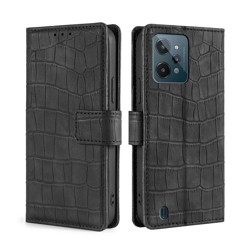 Θήκη τηλεφώνου από δέρμα με μαγνητικό κούμπωμα και υφή κροκόδειλου για OPPO Realme C31 (Μαύρο)
