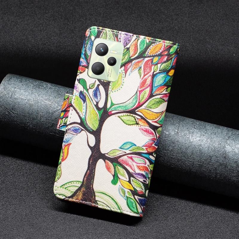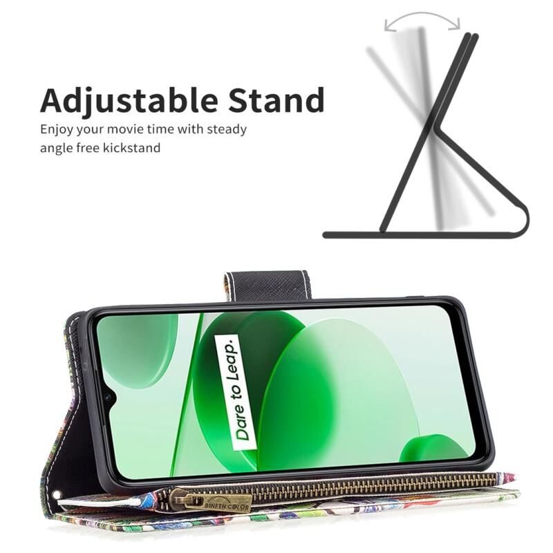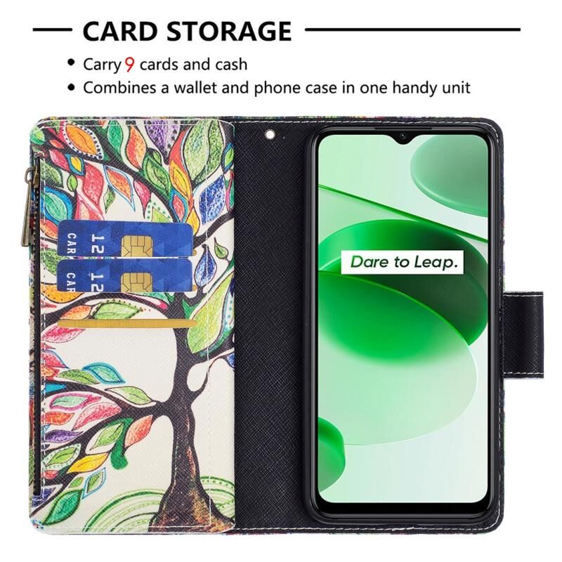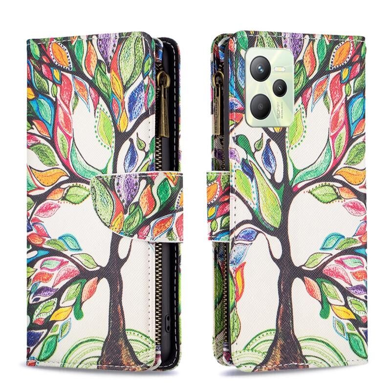 Θήκη τηλεφώνου από δέρμα με φερμουάρ και πολύχρωμο σχέδιο για OPPO Realme C35 (Big Tre)