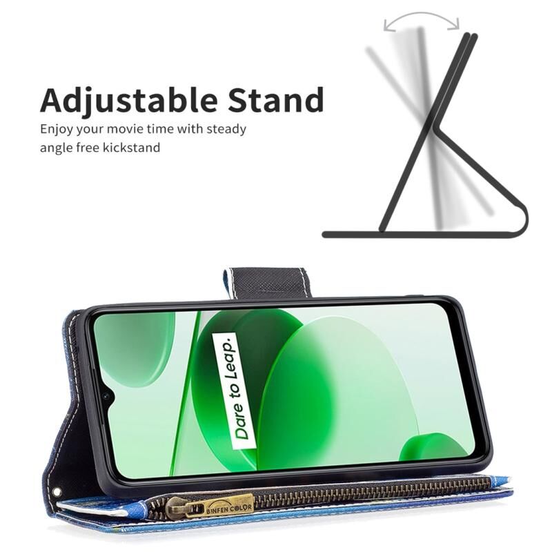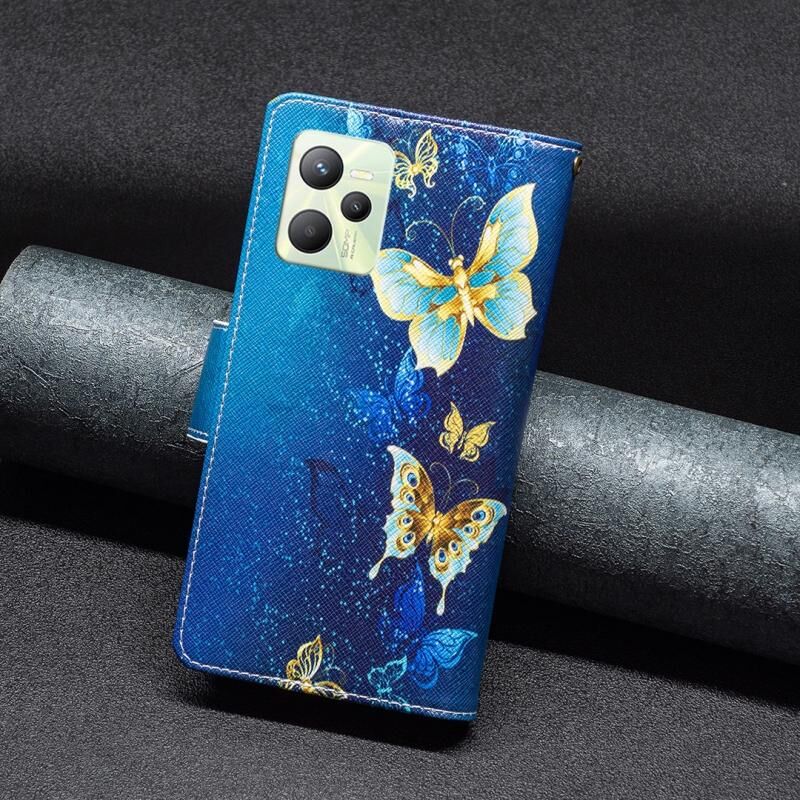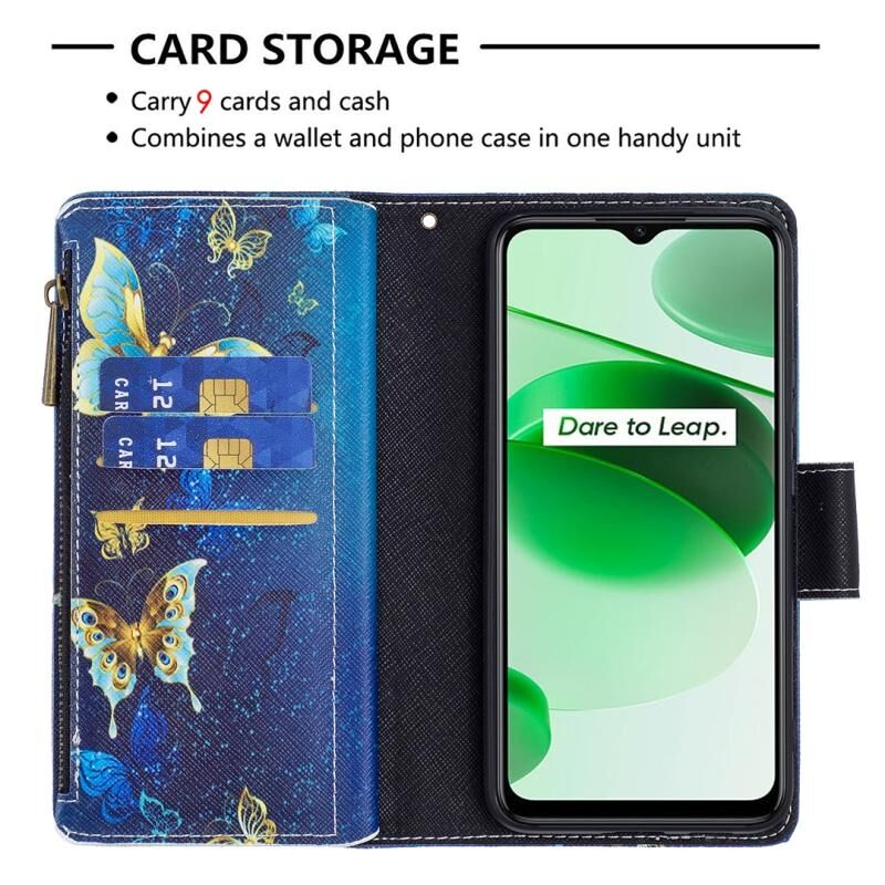 Θήκη τηλεφώνου από δέρμα με φερμουάρ και πολύχρωμο σχέδιο για OPPO Realme C35 (Μωβ Πεταλούδα)