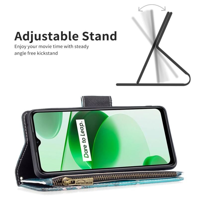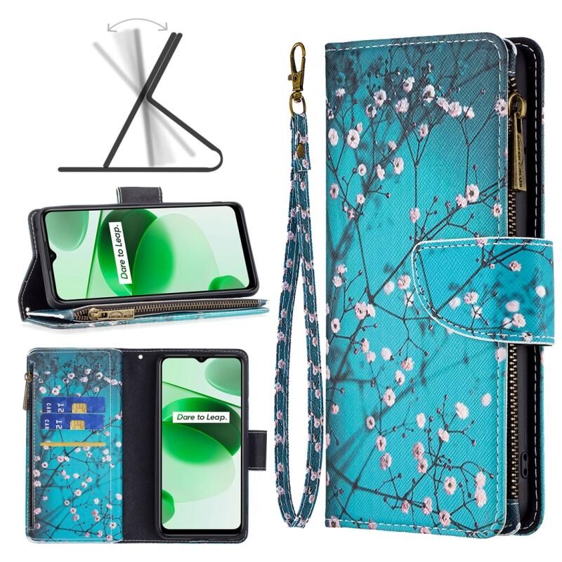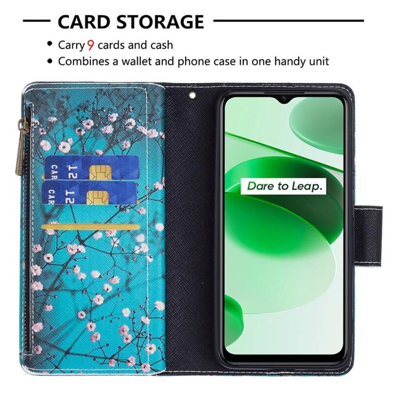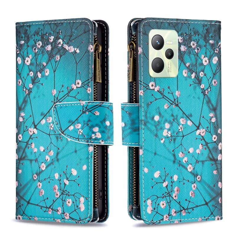 Θήκη τηλεφώνου από δέρμα με φερμουάρ και σχέδιο ζωγραφικής για OPPO Realme C35 (Λουλούδι Δαμασκηνιάς)