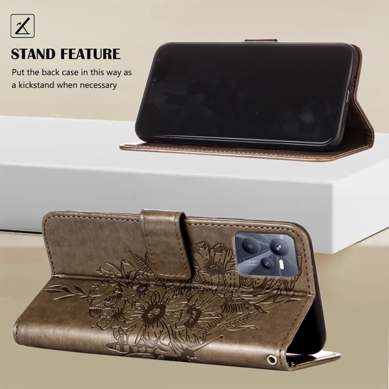 Θήκη τηλεφώνου από δέρμα με ανάγλυφο σχέδιο πεταλούδας για OPPO Realme C35 (Γκρι)