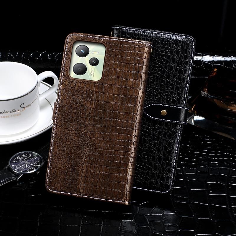 Θήκη τηλεφώνου από δέρμα με υφή κροκόδειλου idewei για OPPO Realme C35 (Σκούρο Μπλε) (idewei)