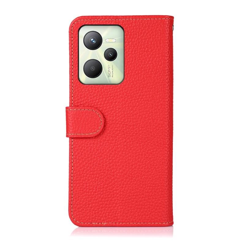 Θήκη τηλεφώνου από γνήσιο δέρμα Litchi KHAZNEH για OPPO Realme C35 (Μαύρο)