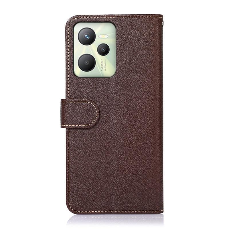 Θήκη τηλεφώνου OPPO Realme C35 KHAZNEH με δέρμα υφής Λίτσι και προστασία RFID (Μαύρο)