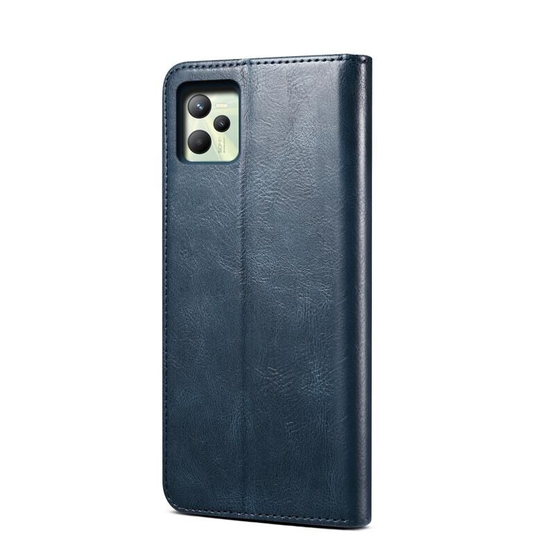 Θήκη τηλεφώνου από δέρμα με οριζόντιο άνοιγμα για OPPO Realme C35, απλή, με υφή Crazy Horse Wax, με θήκες για κάρτες & βάση (Σκούρο Πράσινο)