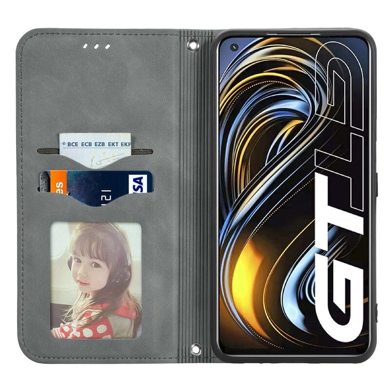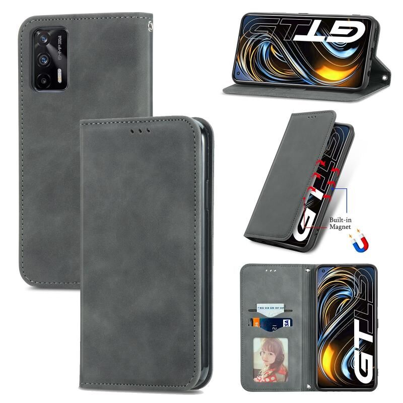 Για OPPO Realme GT 5G /Realme Q3 Pro 5G Retro Skin Feel Business Μαγνητική οριζόντια Flip δερμάτινη θήκη με υποδοχές για κάρτες & πορτοφόλι & πλαίσιο φωτογραφιών (γκρι)