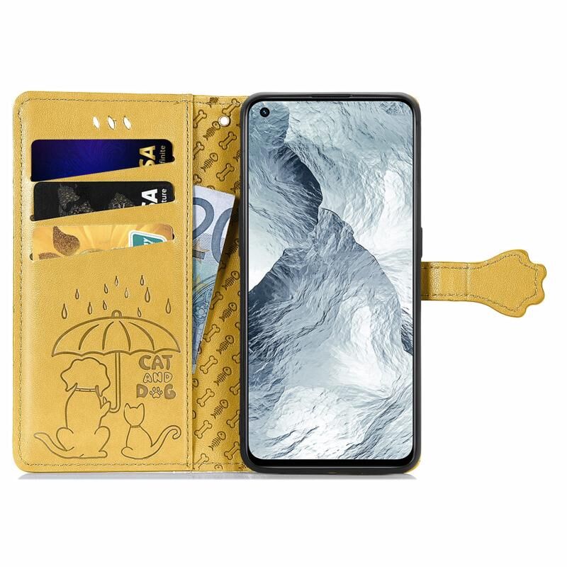 Θήκη δέρματος οριζόντιας αναδίπλωσης για OPPO Realme GT Master με χαριτωμένο σχέδιο ανάγλυφου γάτας και σκύλου, με βάση στήριξης & υποδοχές καρτών & πορτοφόλι & κούμπωμα καρτούν & κορδόνι (Μωβ)