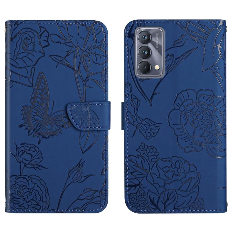 Θήκη τηλεφώνου OPPO Realme GT Master με υφή δέρματος, ανάγλυφο σχέδιο πεταλούδας και παιώνιας (Κόκκινο)