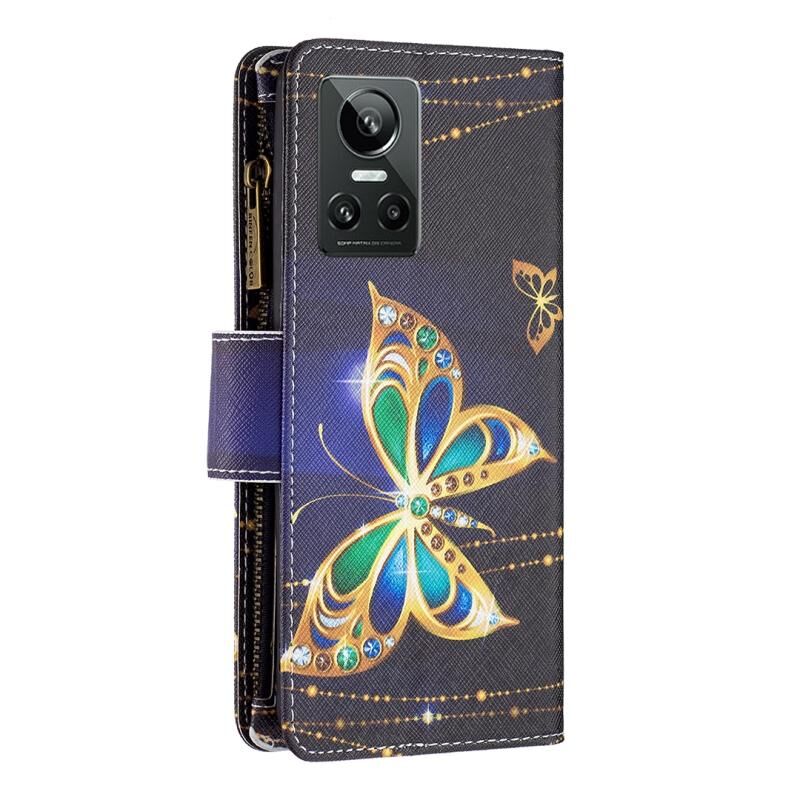 Θήκη τηλεφώνου από δέρμα με φερμουάρ και πολύχρωμο σχέδιο για OPPO Realme GT Neo3 (Μεγάλη Πεταλούδα)