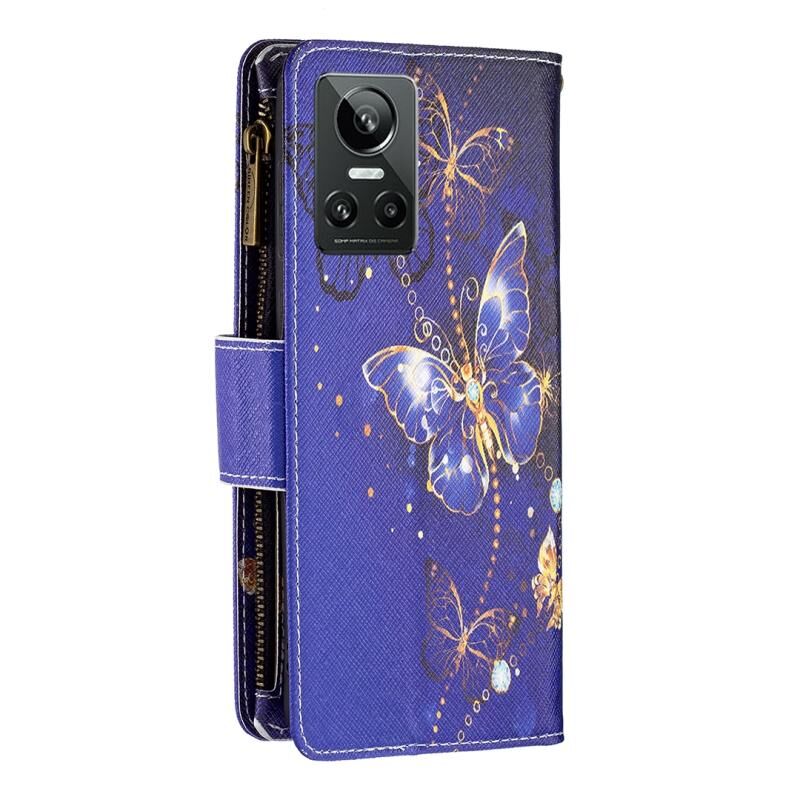 Θήκη τηλεφώνου από δέρμα με φερμουάρ και πολύχρωμο σχέδιο για OPPO Realme GT Neo3 (Μωβ Πεταλούδα)