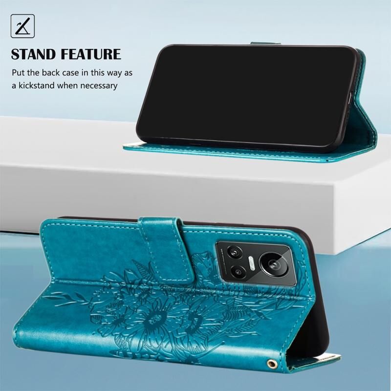 Θήκη τηλεφώνου από δέρμα με ανάγλυφο σχέδιο πεταλούδας για OPPO Realme GT Neo3 (Γκρι)