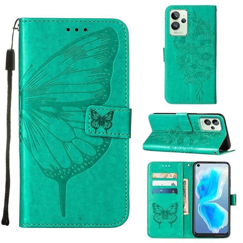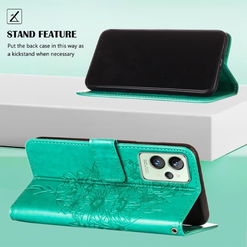 Θήκη τηλεφώνου από δέρμα με ανάγλυφο σχέδιο πεταλούδας για OPPO Realme GT2 Pro (Γκρι)