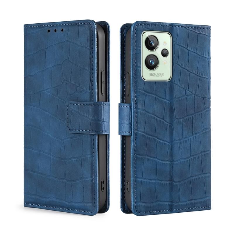Θήκη τηλεφώνου από δέρμα με μαγνητικό κούμπωμα και υφή κροκόδειλου για OPPO Realme GT2 Pro (Μαύρο)