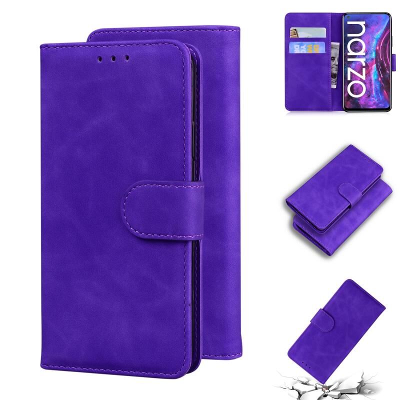 Θήκη τηλεφώνου από δέρμα με αίσθηση αφής, σε καθαρό χρώμα και σχέδιο flip για OPPO Realme Narzo 30 Pro 5G/V5 (Καφέ)