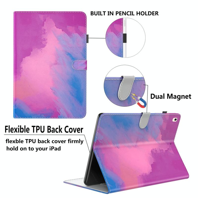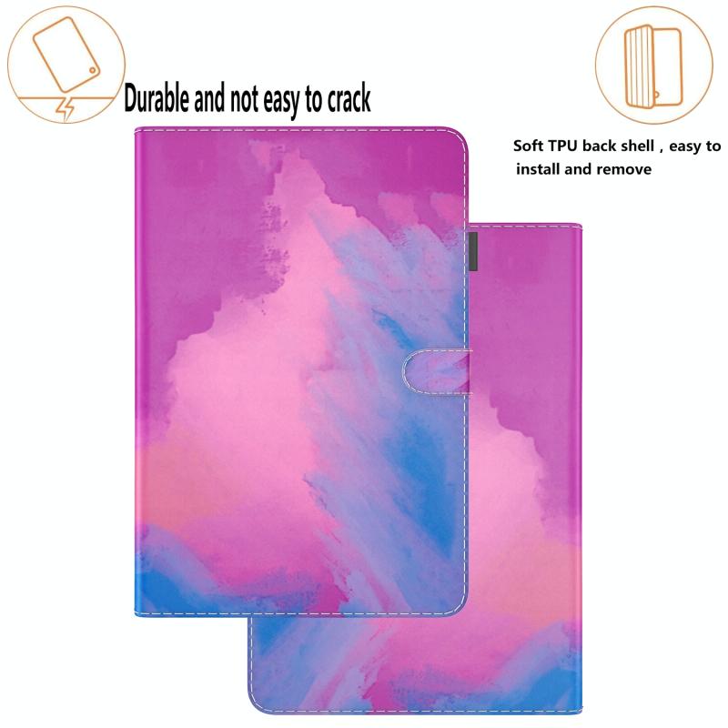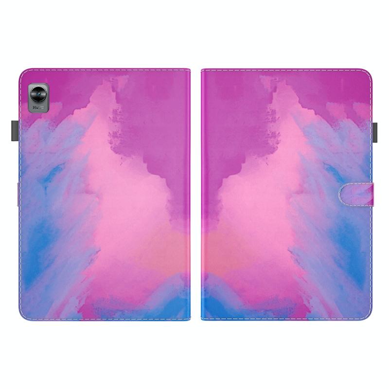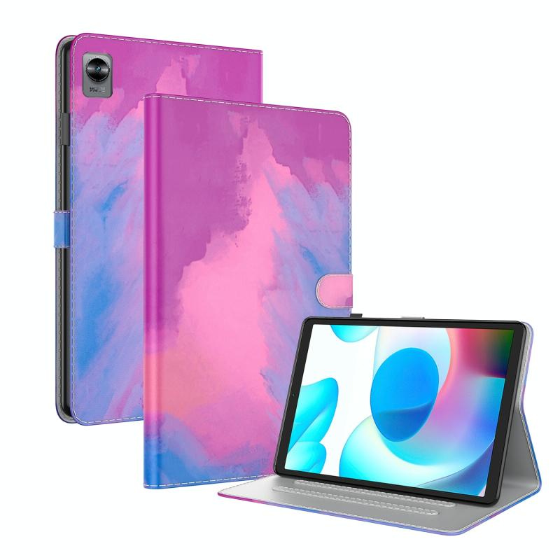 Θήκη δερματίνης με σχέδιο ακουαρέλας για OPPO Realme Pad mini 8.7 ιντσών (Μωβ-Κόκκινο)