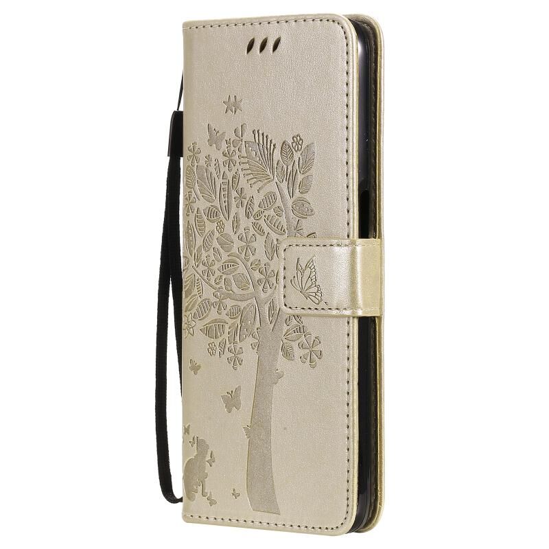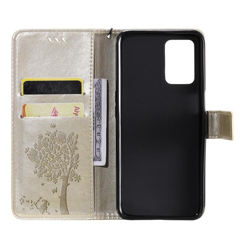 Για OPPO Realme V13 5G / Realme 8 5G Θήκη Δερματίνης PU με Οριζόντιο Άνοιγμα, με Σχέδιο Δέντρου & Γάτας, με Εκτύπωση υπό Πίεση, με Θήκη, Θήκες Καρτών, Πορτοφόλι & Λουρί (Πράσινο)