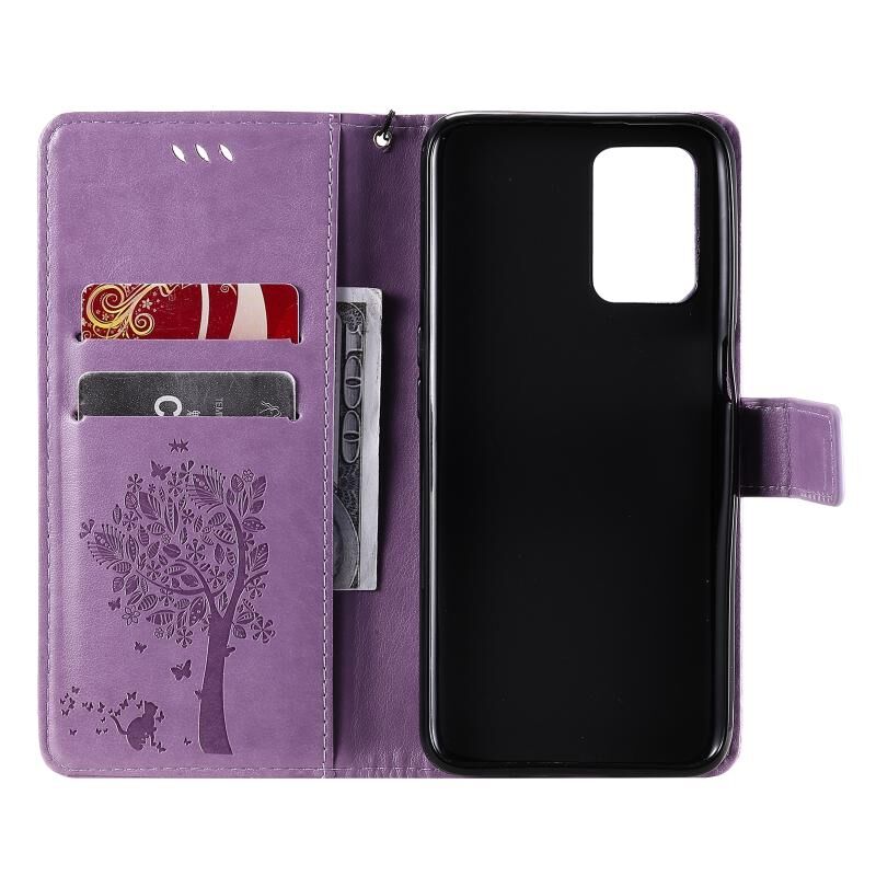 Για OPPO Realme V13 5G / Realme 8 5G Θήκη Δερματίνης PU με Οριζόντιο Άνοιγμα, με Σχέδιο Δέντρου & Γάτας, με Εκτύπωση υπό Πίεση, με Θήκη, Θήκες Καρτών, Πορτοφόλι & Λουρί (Πράσινο)