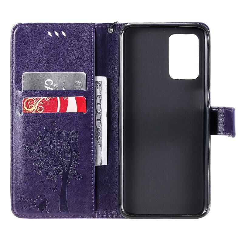 Για OPPO Realme V13 5G / Realme 8 5G Θήκη Δερματίνης PU με Οριζόντιο Άνοιγμα, με Σχέδιο Δέντρου & Γάτας, με Εκτύπωση υπό Πίεση, με Θήκη, Θήκες Καρτών, Πορτοφόλι & Λουρί (Πράσινο)