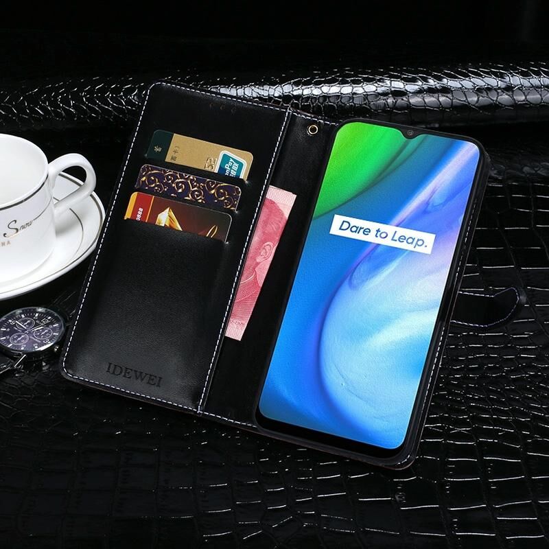 Για OPPO Realme V3 5G idewei Δερμάτινη θήκη οριζόντιας αναδίπλωσης με υφή κροκόδειλου με βάση & υποδοχές καρτών & πορτοφόλι (Μαύρο) (idewei)