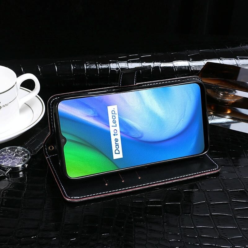Για OPPO Realme V3 5G idewei Δερμάτινη θήκη οριζόντιας αναδίπλωσης με υφή κροκόδειλου με βάση & υποδοχές καρτών & πορτοφόλι (Σκούρο Μπλε) (idewei)