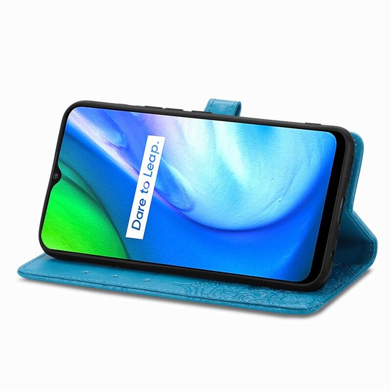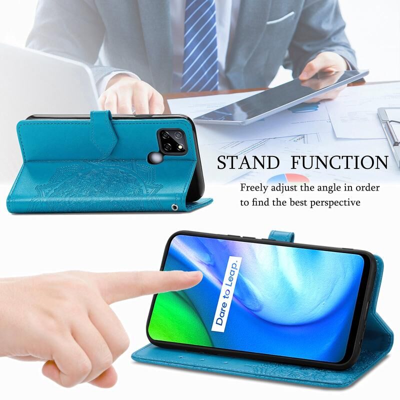 Θήκη δέρματος οριζόντιας αναδίπλωσης για OPPO Realme V3 με ανάγλυφο σχέδιο Mandala, με βάση στήριξης & τρεις θήκες για κάρτες & πορτοφόλι & λουρί (Μαύρο)