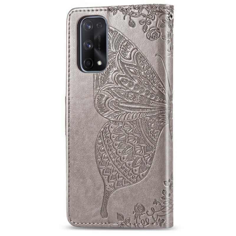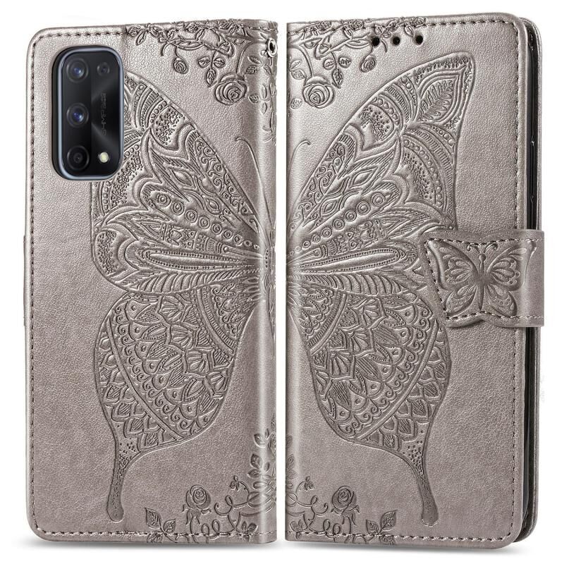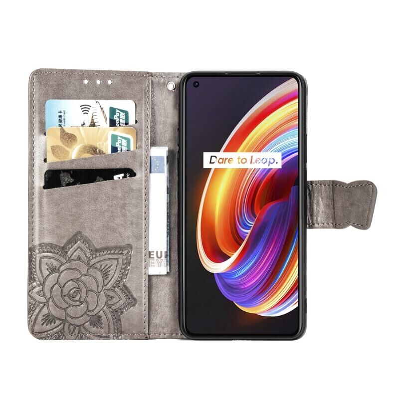 Θήκη δέρματος οριζόντιας αναδίπλωσης για OPPO Realme X7 με ανάγλυφο σχέδιο πεταλούδας, λουλουδιών, βάση στήριξης / υποδοχή κάρτας / πορτοφόλι / κορδόνι (Μαύρο)