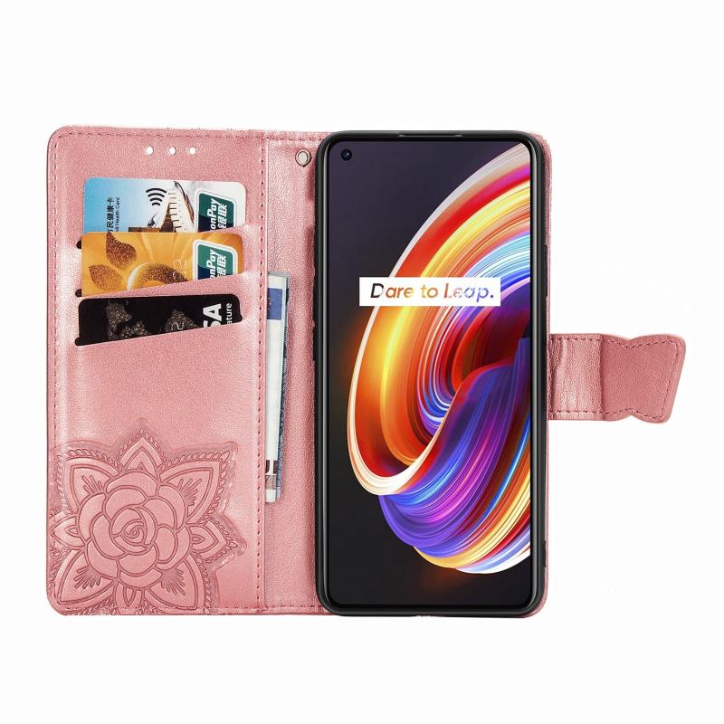 For OPPO Realme X7 Pro Butterfly Love Flower Embossed Horizontal Flip Leather Case with Bracket / Card Slot / Wallet / Lanyard(Rose Gold)