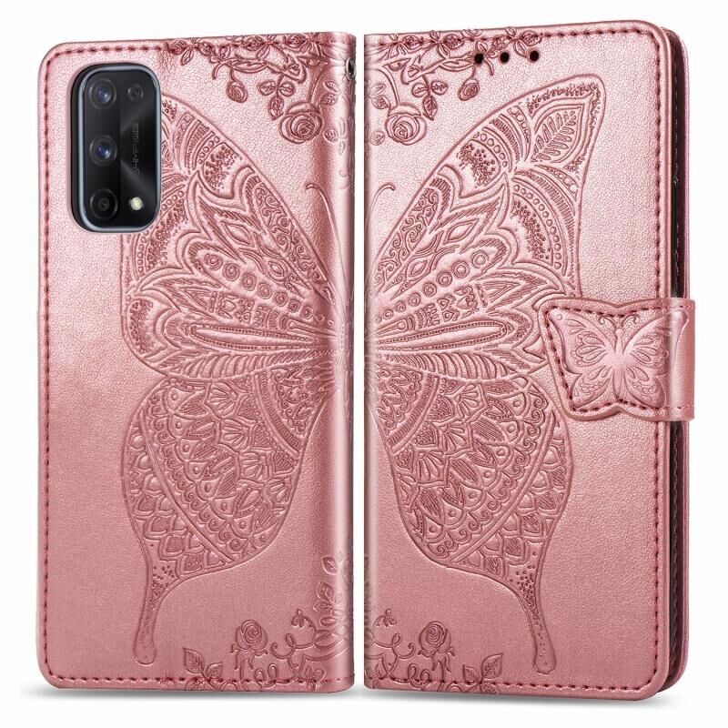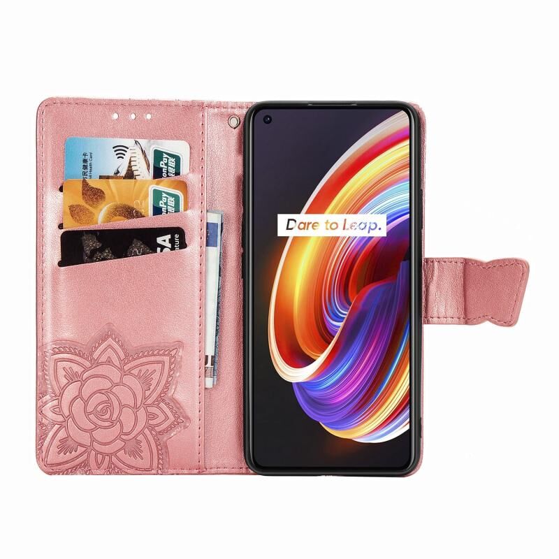 Θήκη δέρματος οριζόντιας αναδίπλωσης για OPPO Realme X7 Pro με ανάγλυφο σχέδιο πεταλούδας, λουλουδιών, βάση στήριξης / υποδοχή κάρτας / πορτοφόλι / κορδόνι (Μαύρο)