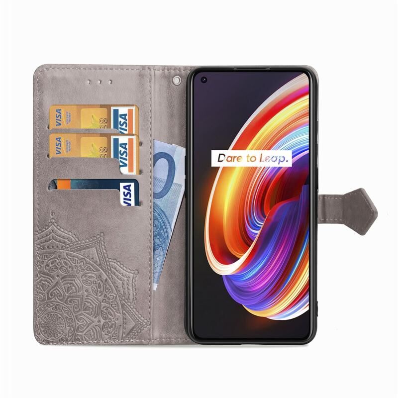 Για OPPO Realme X7 Pro Θήκη Δέρματος Οριζόντιας Αναδίπλωσης TPU + PU με ανάγλυφο σχέδιο Mandala, με βάση & Τρεις Θήκες Καρτών & Πορτοφόλι (Μαύρο)