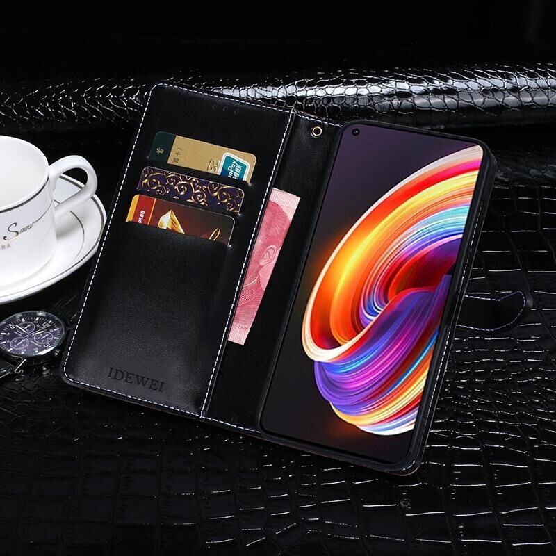 Για το OPPO Realme X7 Pro θήκη δέρματος οριζόντιας αναδίπλωσης με υφή κροκόδειλου idewei με βάση & υποδοχές καρτών & πορτοφόλι (Μαύρο) (idewei)
