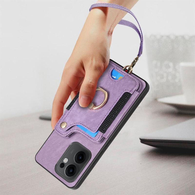 Θήκη τηλεφώνου για OPPO Reno 13F με ρετρό υφή, δακτύλιο και πολλαπλές θήκες καρτών (Μαύρο)
