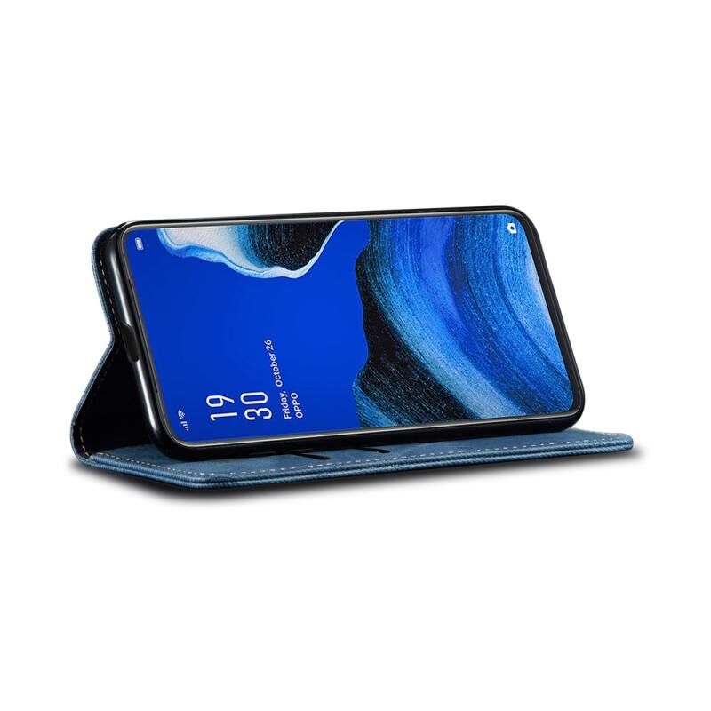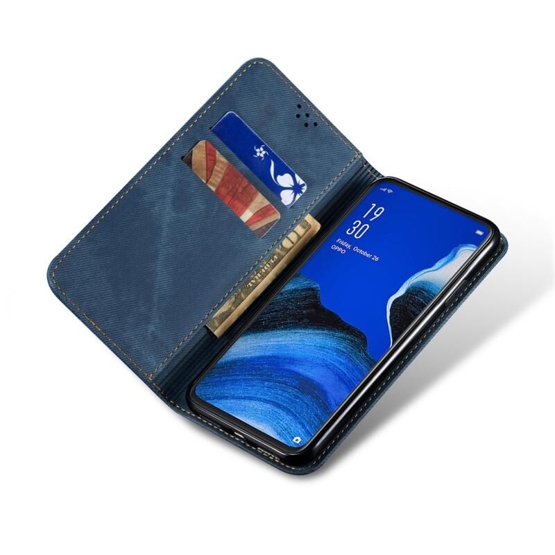 Για OPPO Reno 2 Denim Υφή Casual Style Οριζόντια Flip δερμάτινη θήκη με κάτοχο & υποδοχές για κάρτες & πορτοφόλι (μπλε)