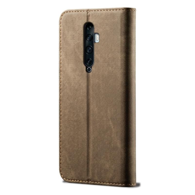 Για OPPO Reno 2 Denim Υφή Casual Style Οριζόντια Flip δερμάτινη θήκη με κάτοχο & υποδοχές για κάρτες & πορτοφόλι (χακί)