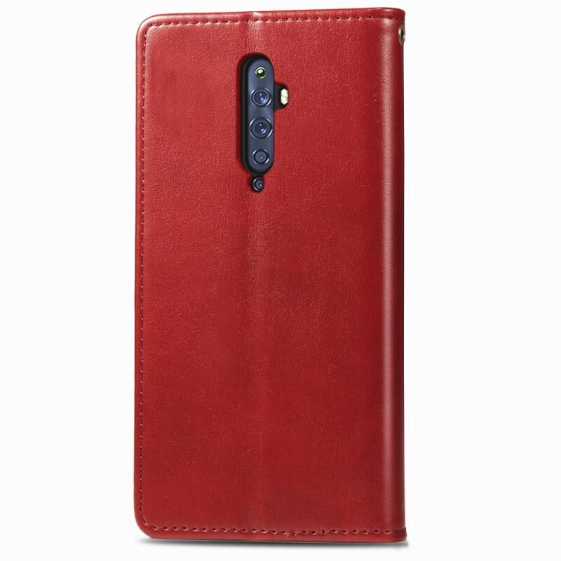 Για OPPO Reno 2F / Reno 2Z Ρετρό στερεό χρώμα δερμάτινη θήκη τηλεφώνου πόρπη με κορδόνι & πλαίσιο φωτογραφιών & υποδοχή κάρτας & πορτοφόλι & λειτουργία Stand (Κόκκινο)