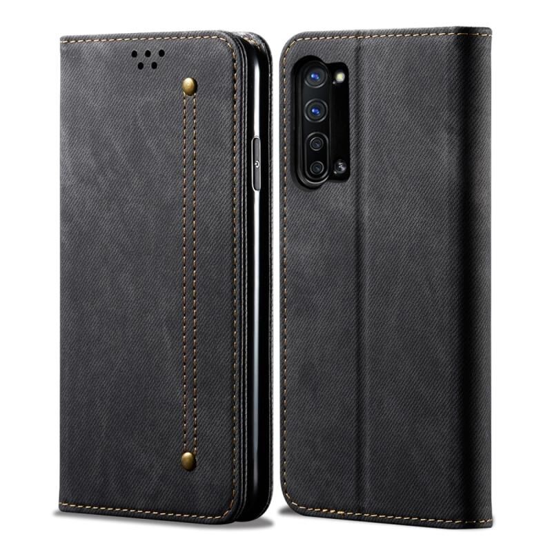 Για OPPO Reno 3 5G / Reno 3 Νεολαία Denim Υφή Casual Style Οριζόντια Flip δερμάτινη θήκη με κάτοχο & υποδοχές για κάρτες & πορτοφόλι (μαύρο)