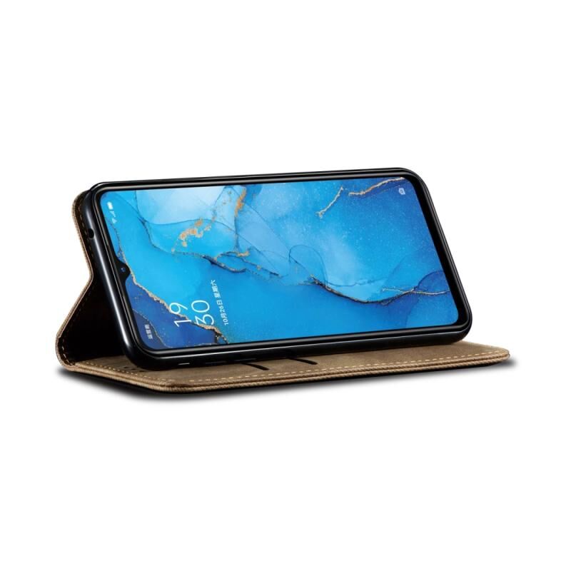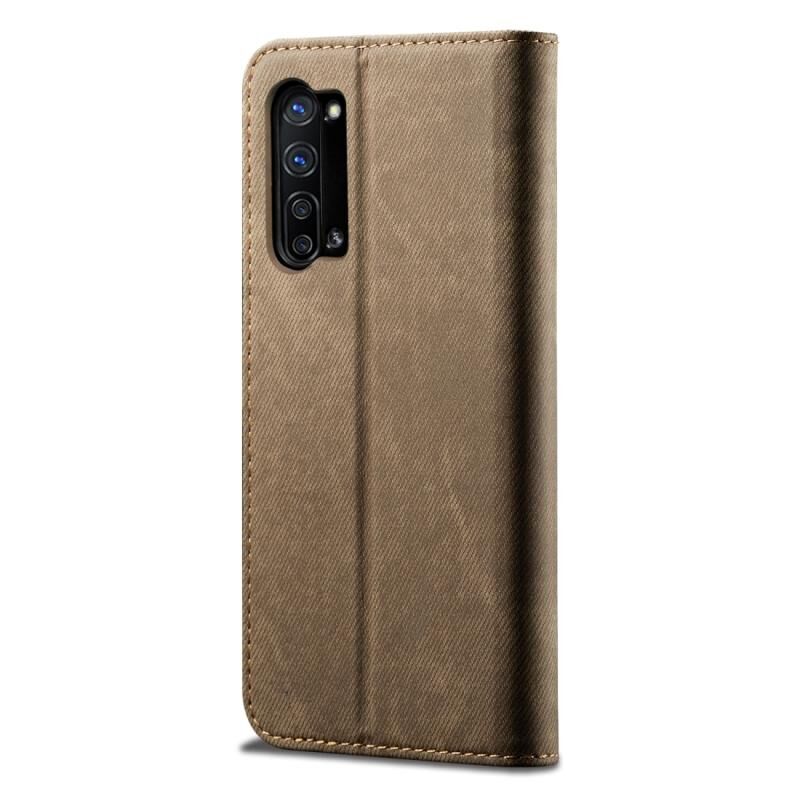 Για OPPO Reno 3 5G / Reno 3 Youth Denim Υφή Casual Style Οριζόντια Flip δερμάτινη θήκη με κάτοχο & υποδοχές για κάρτες & πορτοφόλι (χακί)