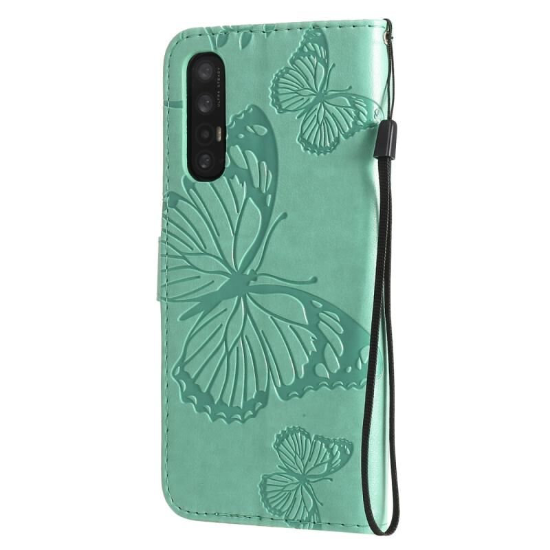 Για OPPO Reno 3 Pro 5G / Find X2 Neo 3D Πεταλούδες Embossing Μοτίβο Οριζόντια Δερμάτινη Θήκη με Στήριξη & Θήκη Κάρτας & Πορτοφόλι & Λουρί (Πράσινο)