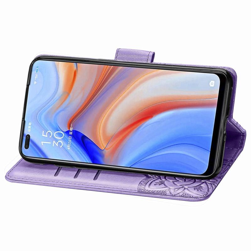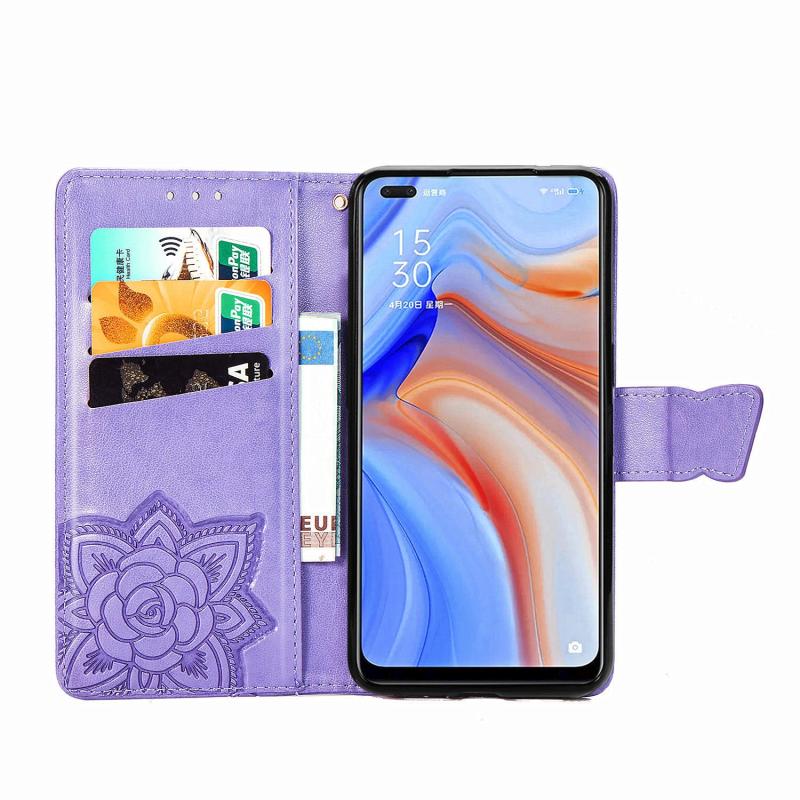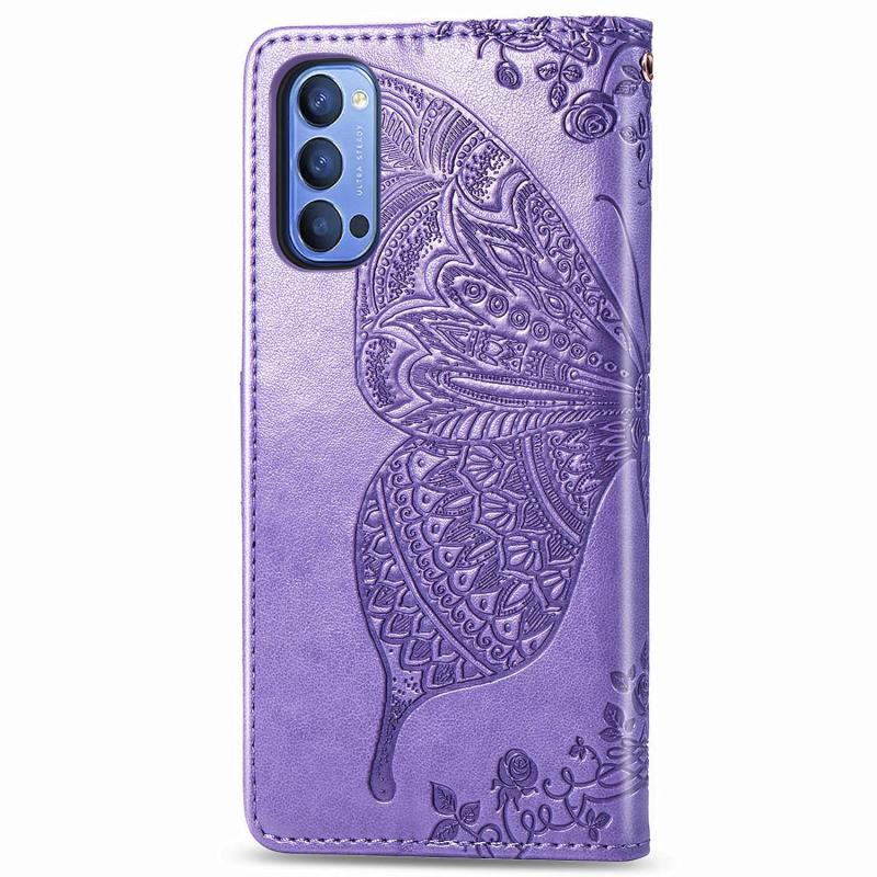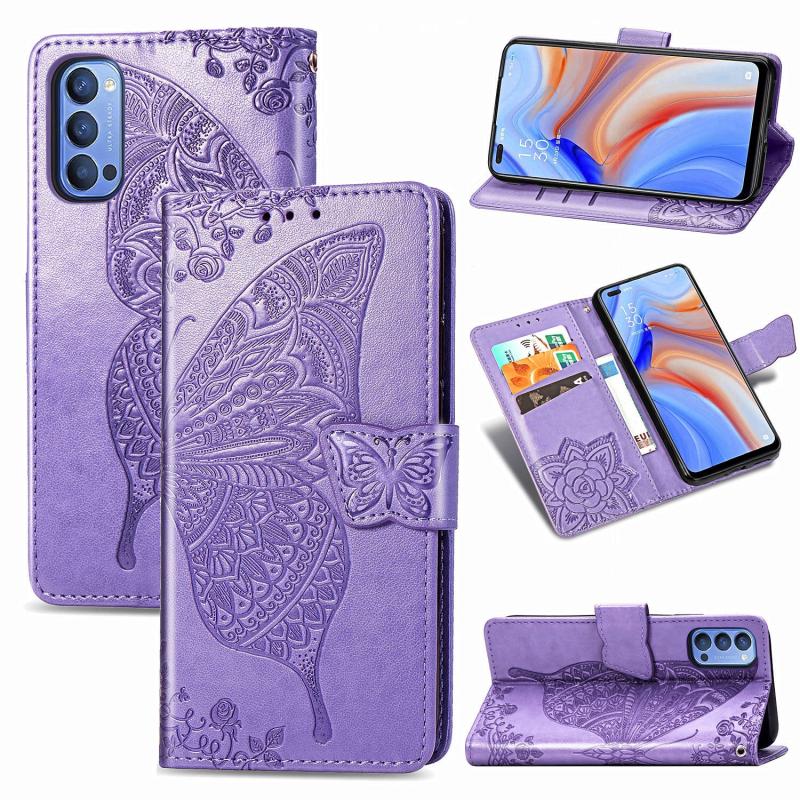 For OPPO Reno 4 4G Butterfly Love Flower Embossed Horizontal Flip Leather Case with Bracket / Card Slot / Wallet / Lanyard(Light Purple)
