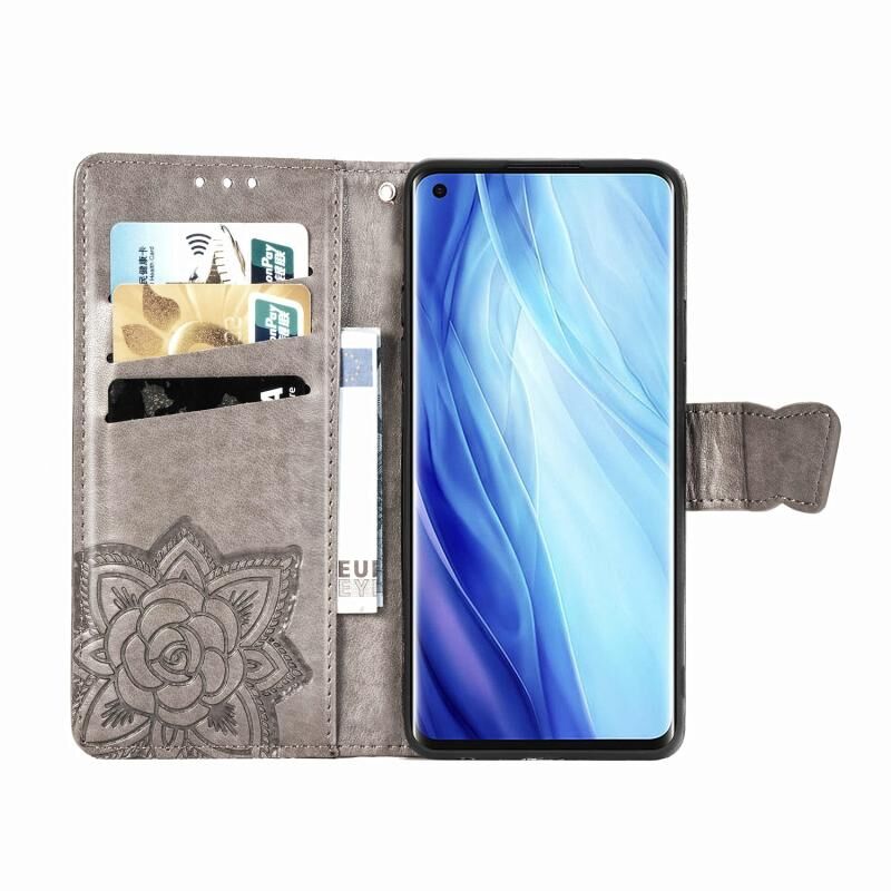 Για το OPPO Reno 4 PRO 4G, Θήκη Δέρματος Οριζόντιας Αναδίπλωσης με ανάγλυφο σχέδιο Πεταλούδας και Λουλουδιών, με Στήριγμα / Θήκη Καρτών / Πορτοφόλι / Λουρί (Μαύρο)