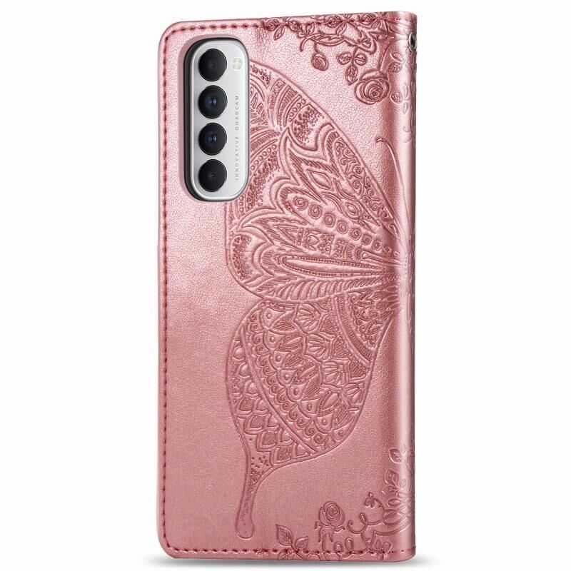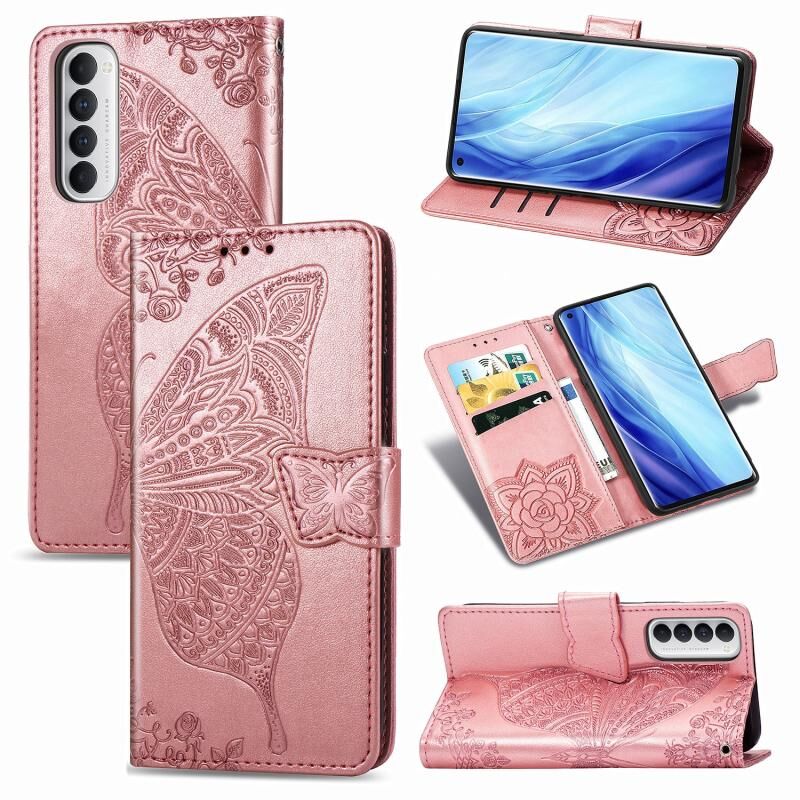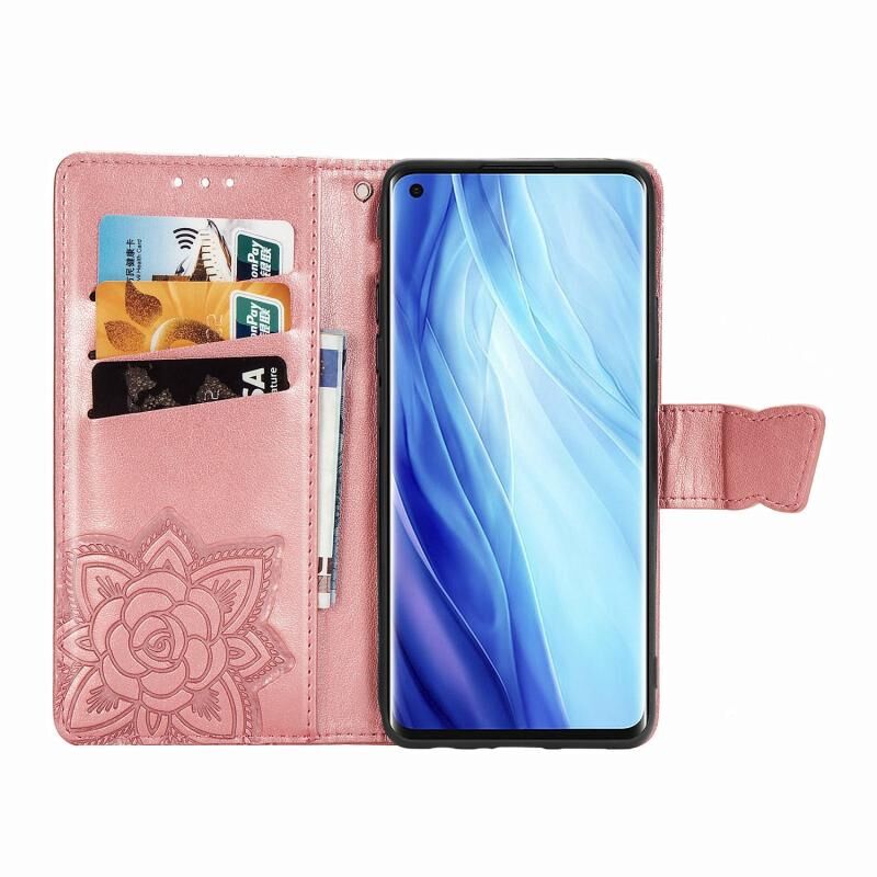 Για το OPPO Reno 4 PRO 4G, Θήκη Δέρματος Οριζόντιας Αναδίπλωσης με ανάγλυφο σχέδιο Πεταλούδας και Λουλουδιών, με Στήριγμα / Θήκη Καρτών / Πορτοφόλι / Λουρί (Μαύρο)