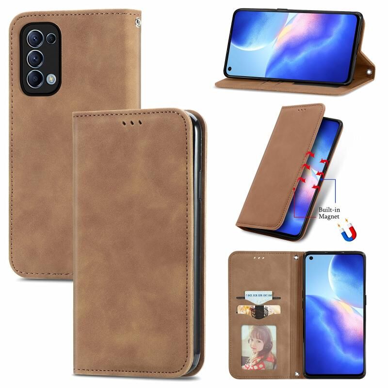 Για OPPO Reno 5 5G / Find X3 Lite Ρετρό δέρμα αίσθηση Business μαγνητική οριζόντια Flip δερμάτινη θήκη με κάτοχο & υποδοχές καρτών & πορτοφόλι & πλαίσιο φωτογραφιών (Καφέ)