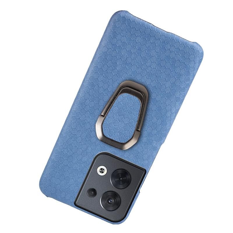 Θήκη τηλεφώνου OPPO Reno 8 5G με δακτύλιο στήριξης και υφή κηρήθρας PU (γαλάζιο)