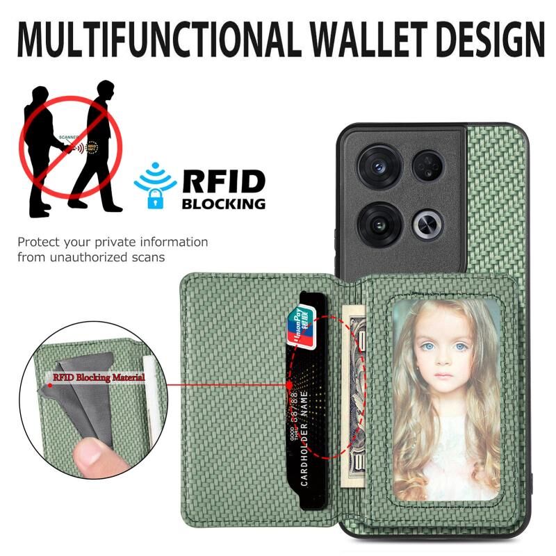 For OPPO Reno 8 Pro Carbon Fiber Magnetic Card Bag Phone Case(Khaki)
