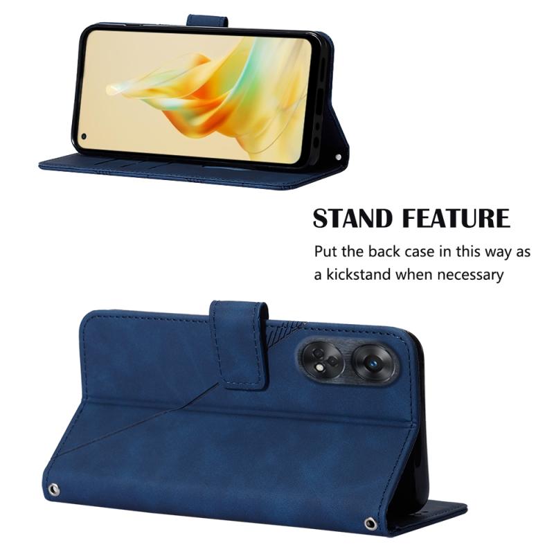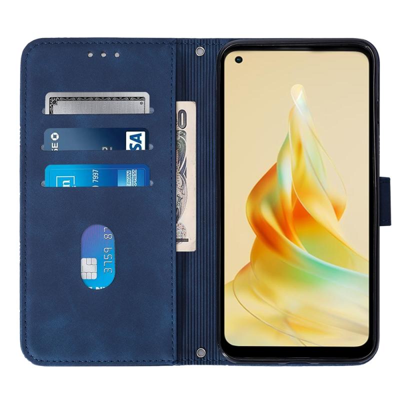 Θήκη τηλεφώνου από δέρμα με ανάγλυφο 3D, τύπου flip, για OPPO Reno 8T 4G Global με λουρί (Μπλε)