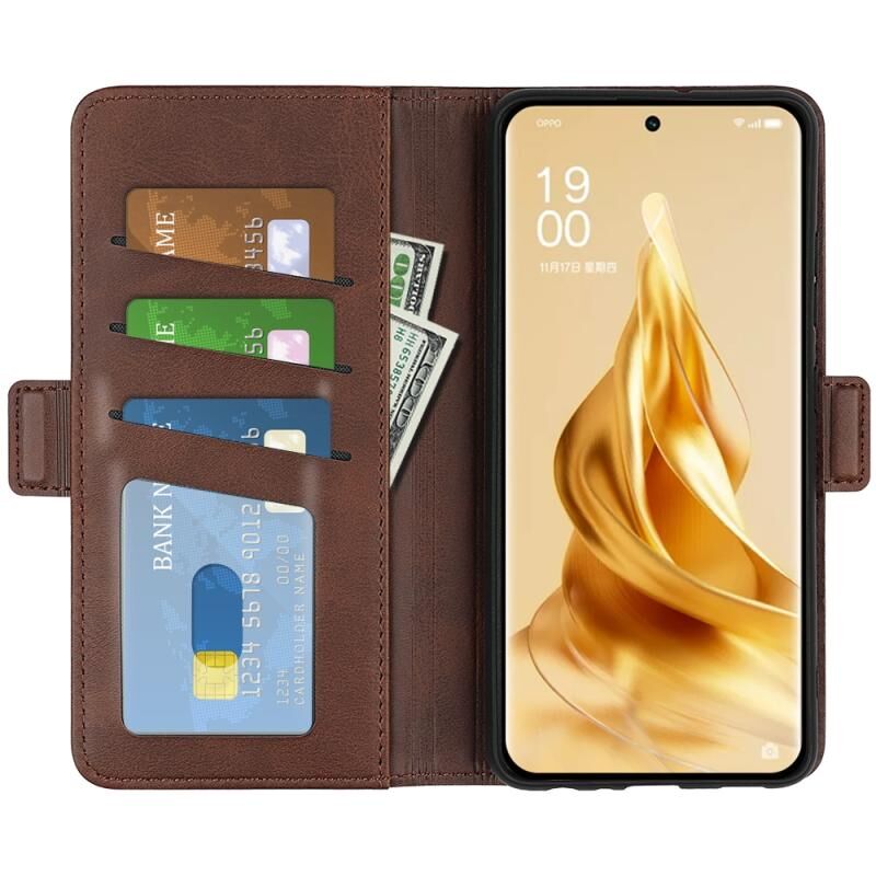 Για OPPO Reno 9 Pro Plus Διπλής όψης μαγνητική πόρπη οριζόντια Flip δέρμα τηλέφωνο υπόθεση (καφέ)